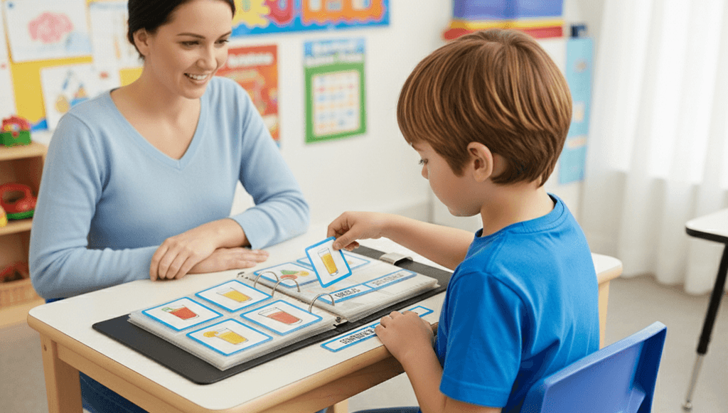Um conjunto de estratégias e recursos que auxiliam ou substituem a fala em pessoas com dificuldades de comunicação oral. Ela pode incluir gestos, pranchas de comunicação, figuras, símbolos, aplicativos e dispositivos eletrônicos, favorecendo a expressão de necessidades, desejos e ideias.